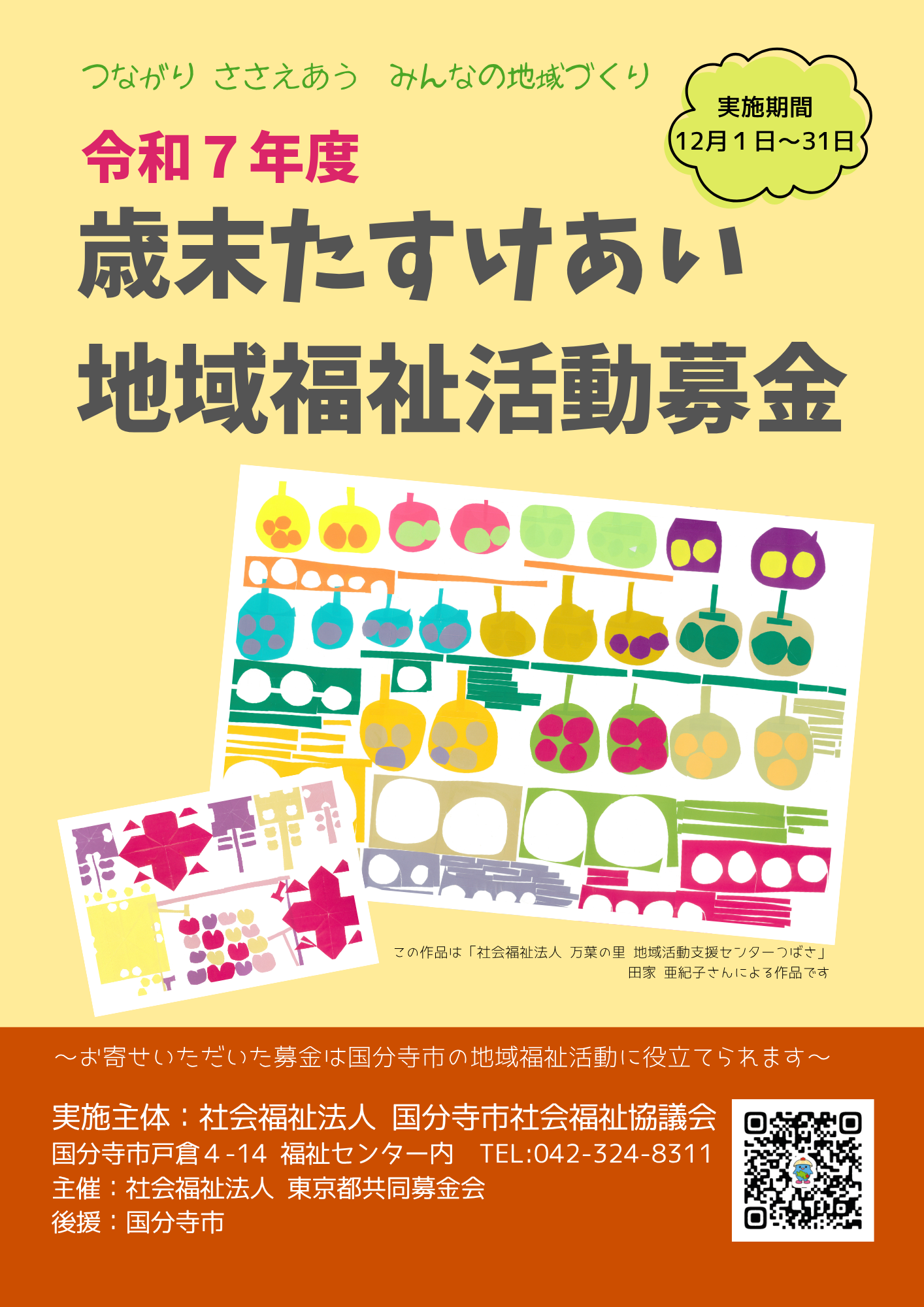 東京都共同募金会が主催し、国分寺地区協力会(国分寺市社会福祉協議会内に事務局を設置)が実施主体となり、募金運動を行っています。