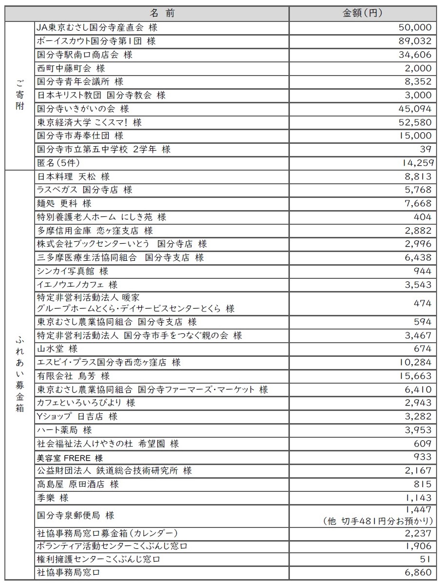 国分寺市社会福祉協議会が取り組んでいるさまざまな地域福祉活動は、本会会員の皆様からの会費やご寄附で支えられています。