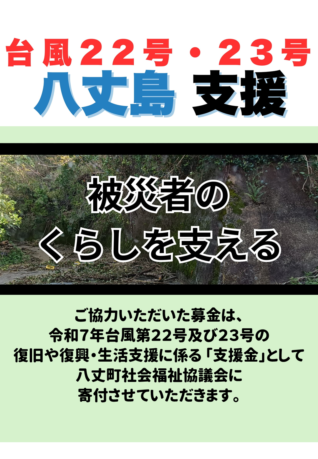 また、当日は令和7年台風22・23号八丈島被災支援募金箱(支援金)を設置しま す。
